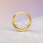 Cercel rotund auriu titan tip clicker cu rand de cristale