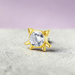 Labret din titan, finisaj auriu, cu design în formă de pisicuță și cristal – o bijuterie simpatică, dar suficient de fină încât să rămână stylish. Un detaliu jucăuș care adaugă personalitate fără să încarce.